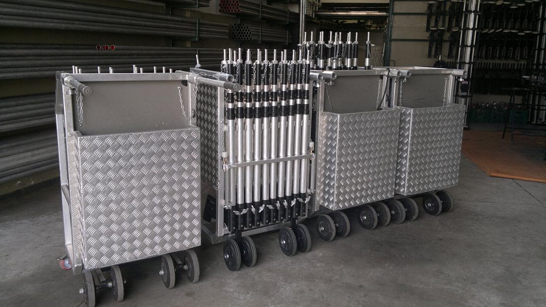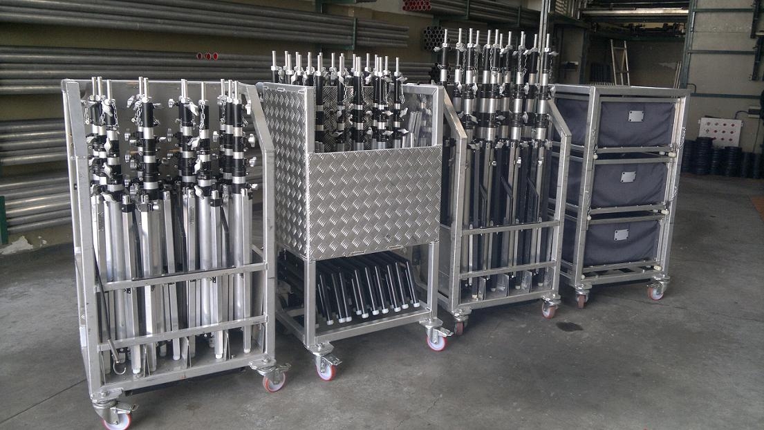 Carrinhos em alumÃnio, com rodas, para transporte de Tripés e Acessórios diversos.