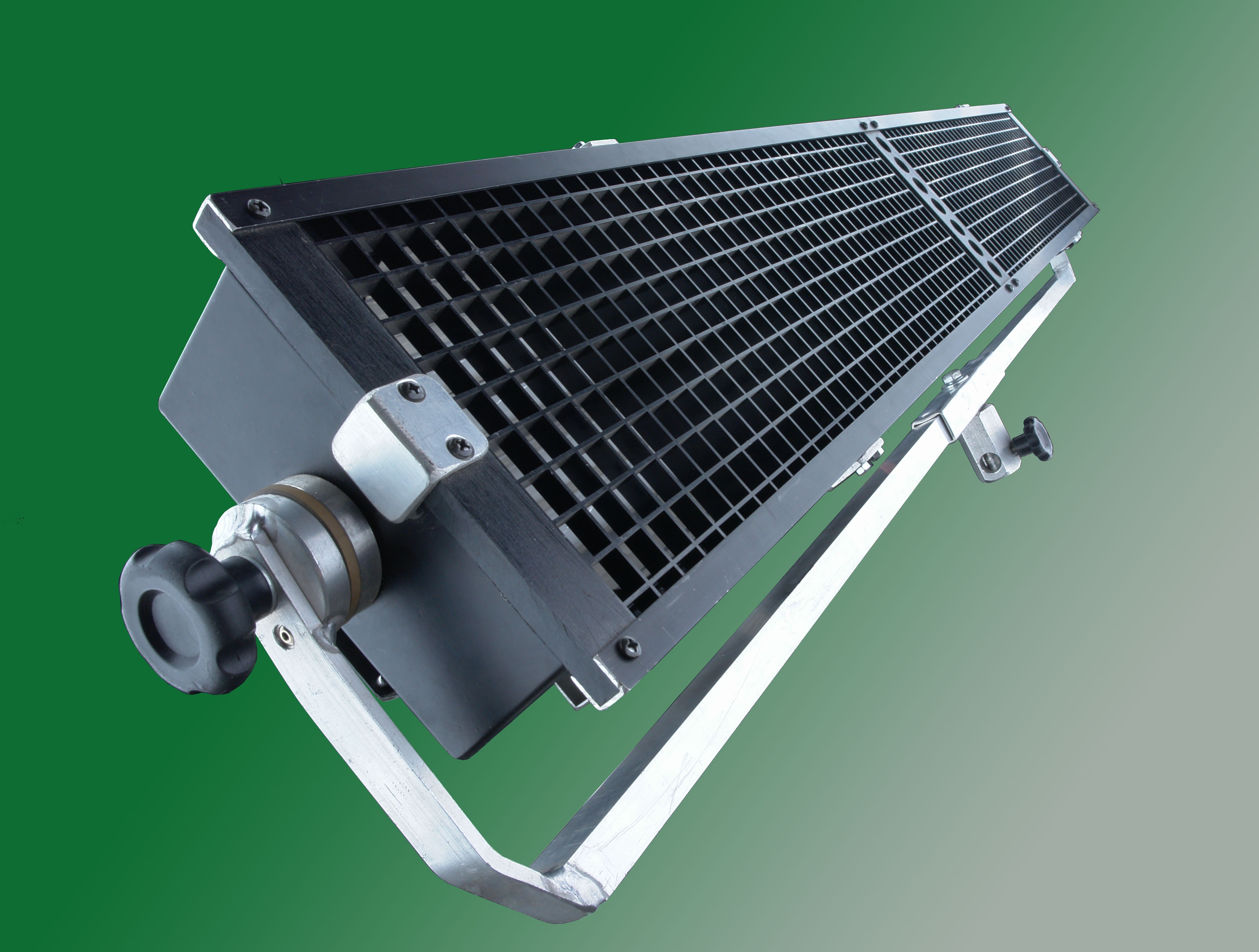 É composta de quatro lâmpadas fluorescentes de alto rendimento luminoso (3200º/5500º) e boa reprodução cromática. A orientação horizontal utilizada na montagem de suas lâmpadas amplia a área da luz produzida pelo refletor. Em comparação à PL 4 vertical, possibilita a cobertura de uma área maior com o uso de menos refletores. Tem potência nominal de 220W e funciona na tensão de 230V/Pial. Sua indexação é possÃvel por meio de um cubinho que aceita pinos padrão 5/8 e possui garfo articulador.